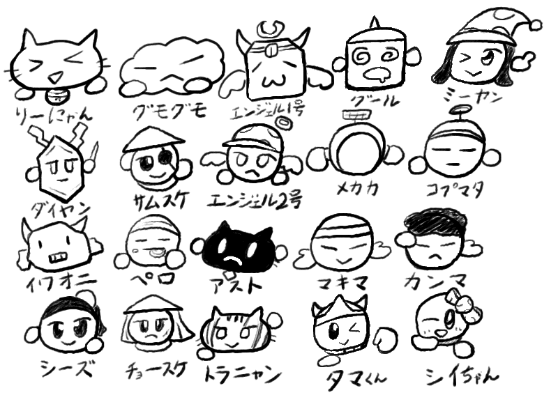 中学生時代に描いたマスコットたちを慣れない板タブで描いたやつ。カービィもどきシリーズすぎる。
