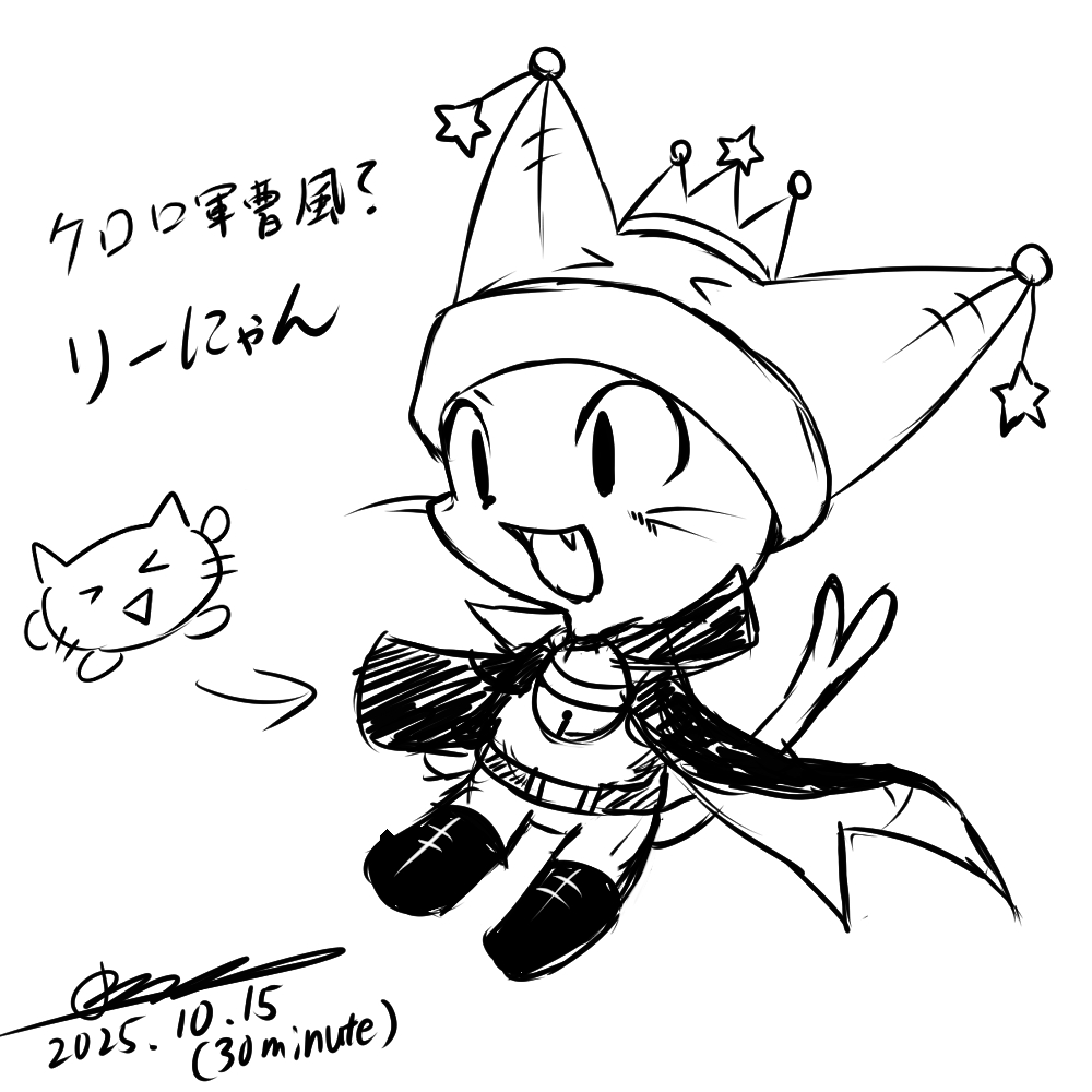 今は描いていないがオリジナル絵では長髪イケメン吸血鬼アル様がレギュラーを取っていて、当ブログの看板キャラになっていたが、そのさらに昔の中学生時代には一頭身カービィもどきの「りーにゃん」が自分のメインでもあり、専門学生時代でもよく描いていたのだ。まあ、人間じゃないし、描きやすいしね。