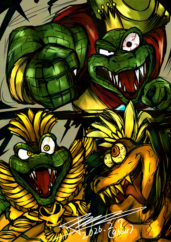 18年ぶりにドンキーシリーズで再登場を果たしたキングクルール。の中で印象深かった顔集。ほとんどゲーム画像を参考にしているだけ。