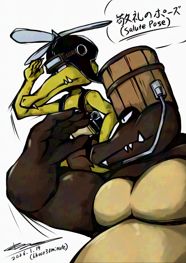 とはいえ、手を描くのは相変わらずムズかったけども。敬礼ってカッコイイポーズな割には難易度高いんよ。